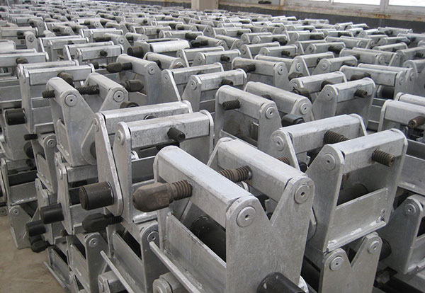 陽極卡具及掛鉤(小盒卡具,螺旋卡具)是大型預(yù)焙陽極鋁電解槽上級結(jié)構(gòu)的一個(gè)重要組成部分,用于400KA預(yù)焙電解槽上母線與導(dǎo)桿組的快速加緊聯(lián)接,在高溫、多塵、強(qiáng)磁場的條件下工作。